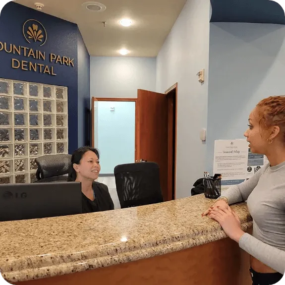 Dentist Flower Mound TX Front Desk Meeting With Patient HP